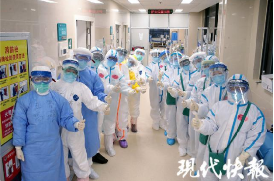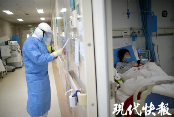 2月18日下午,現(xiàn)代快報記者走進“紅區(qū)”——重癥隔離病房里,用鏡頭記錄下一組組“我和你”的故事。