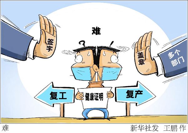 根據(jù)中央部署,全國(guó)不少地方在嚴(yán)抓疫情防控的基礎(chǔ)上,正逐步開(kāi)展復(fù)工復(fù)產(chǎn)。“新華視點(diǎn)”記者接到一些群眾和企業(yè)反映,返程上班和恢復(fù)生產(chǎn),在辦理相關(guān)證明過(guò)程中遭遇不少形式主義的煩惱。