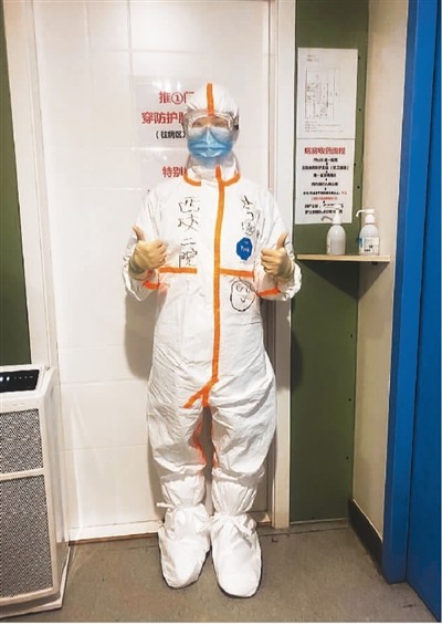 我們每天都是口罩、防護(hù)服、護(hù)目鏡、兩層手套,全副武裝。護(hù)目鏡上雖然每天都要涂洗手液,可是起霧情況總難以避免。