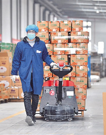 陜西咸陽武功縣,一家電商企業(yè)工作人員在運輸貨品。新華社發(fā)