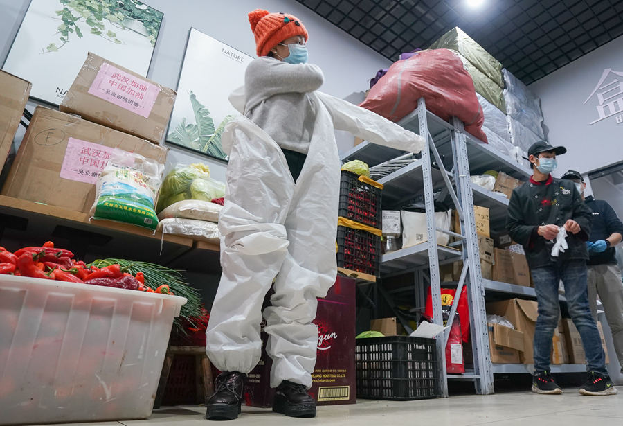 送來(lái)了肉、蔬菜、防護(hù)服等物資