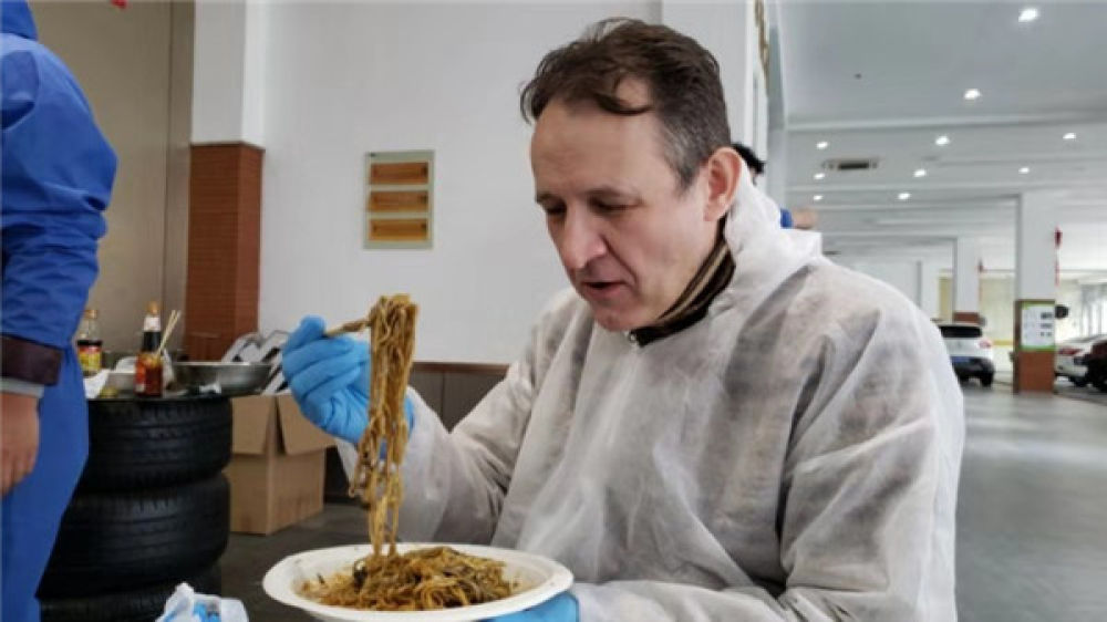 送去消毒水、橡膠手套、防護(hù)服、飯菜