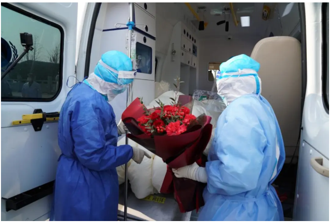 經(jīng)過軍隊支援湖北醫(yī)療隊醫(yī)護人員全力救治,3月7日下午,一名100周歲的老人從湖北省婦幼保健醫(yī)院光谷院區(qū)治愈出院。