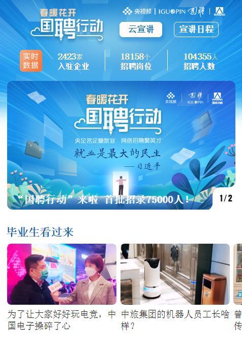 “國聘行動(dòng)”上線以來,已成功舉辦了18場網(wǎng)絡(luò)“云宣講”,累計(jì)求職頁面瀏覽量突破1000萬,投遞簡歷30多萬份。十大軍工企業(yè)、三大航空公司、三大電信運(yùn)營商、各大電力企業(yè)等中央企業(yè)紛紛匯聚,萬科、騰訊、京東、阿里、拼多多等知名民企紛紛參與,企業(yè)負(fù)責(zé)人在線答疑,釋放了大量就業(yè)崗位。