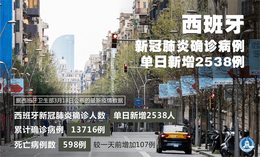 衛(wèi)生部當天中午發(fā)布的數(shù)據(jù)顯示,西班牙全國死亡病例數(shù)達598例,較一天前增加107例,目前仍有774人在重癥監(jiān)護室治療。在疫情最為嚴重的馬德里自治區(qū),目前確診人數(shù)已達5637人。