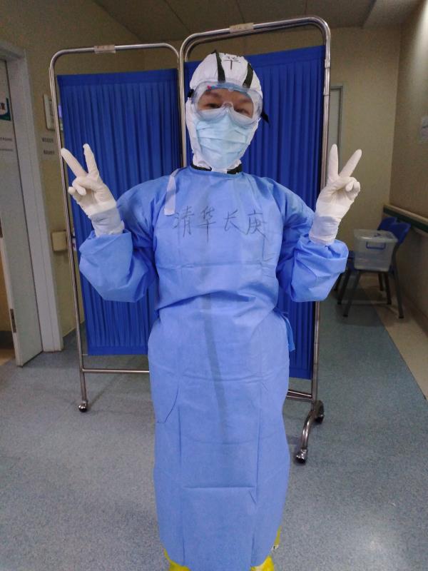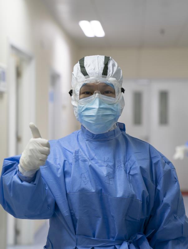 來到武漢已經(jīng)一個月了,周華坦言自己很想家。老父親因病排尿困難,長期插著導尿管,平日里都是周華親自給父親更換。如今,照顧年邁的父親和兒子的重任都落在愛人的身上了。同學、同事聽說她去醫(yī)療隊,紛紛打電話、發(fā)微信告訴她“家里有事找我吧”。和家里人視頻,老父親耳背常聽不清她講話,她就沖著屏幕笑,給老父親豎大拇指,讓他知道自己很好,讓他放心?!拔艺驹诰戎我痪€,是作為一名重癥醫(yī)學人的責任與使命,家人的支持讓我放下包袱、蹈險逆行,后方的支援讓我堅定信心、竭力抗疫。疫情不退,我們不撤!”