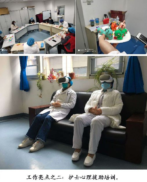 武漢大學(xué)人民醫(yī)院東院根據(jù)專家組提供的方案,制定了本單位具體實(shí)施方案,在醫(yī)院?jiǎn)T工休息區(qū)開設(shè)醫(yī)務(wù)人員心靈驛站,營(yíng)造溫馨輕松環(huán)境(房間布置、花、食物等),播放有關(guān)心理健康知識(shí)、放松訓(xùn)練、心理干預(yù)技巧音頻視頻,為來(lái)訪人員提供生物反饋、音樂治療、放松訓(xùn)練、智能心理減壓放松系統(tǒng)(虛擬現(xiàn)實(shí))、手工制作等心理健康服務(wù)。心靈驛站為醫(yī)護(hù)工作者在繁忙的臨床工作后,提供了一個(gè)休養(yǎng)生息、溝通交流、鼓勁加油的場(chǎng)所,有效緩解了醫(yī)護(hù)人員緊張、焦慮等情緒。