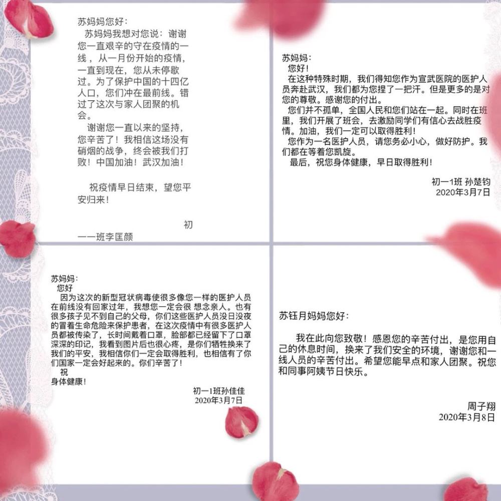 今天,我收到了來(lái)自女兒和她所在的北京市第十五中學(xué)初一(1)班同學(xué)們的38封慰問(wèn)信。孩子們質(zhì)樸的話語(yǔ)和真摯的問(wèn)候,真是讓我意外又驚喜,感動(dòng)又感激,謝謝大家的祝福與鼓勵(lì)!