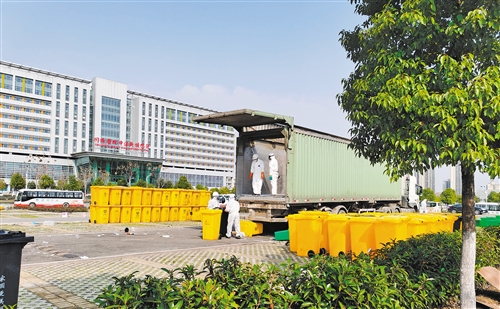 在武漢江夏第一人民醫(yī)院,醫(yī)療垃圾被放入寫有“醫(yī)療廢物”標(biāo)識的黃色垃圾桶,然后從醫(yī)院的垃圾出口運(yùn)出,送入醫(yī)療廢物應(yīng)急處理系統(tǒng)。“所有醫(yī)療廢物桶在出醫(yī)院前先消毒,運(yùn)出后再消毒。”據(jù)醫(yī)療垃圾應(yīng)急處理點(diǎn)負(fù)責(zé)人趙燕妮介紹,平時從病區(qū)收集的醫(yī)療廢物會被送到醫(yī)院的暫存庫,暫存庫有處置中心,由專業(yè)團(tuán)隊運(yùn)到處置點(diǎn)處理。但武漢現(xiàn)在的運(yùn)輸能力和終端處置能力吃緊。在這種情況下,病區(qū)收集的醫(yī)療垃圾,通過醫(yī)療廢物應(yīng)急處理系統(tǒng)就地實現(xiàn)無害化處理。