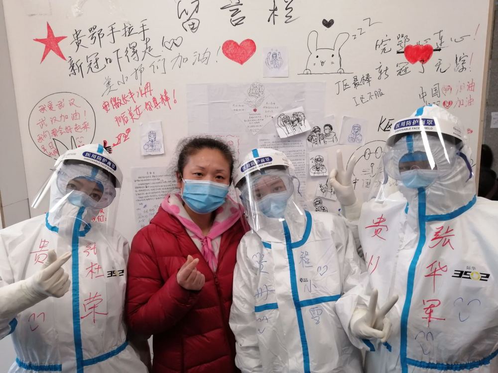 圖為貴州醫(yī)科大學附屬醫(yī)院援武漢醫(yī)療隊程小雪與患者和同事們。