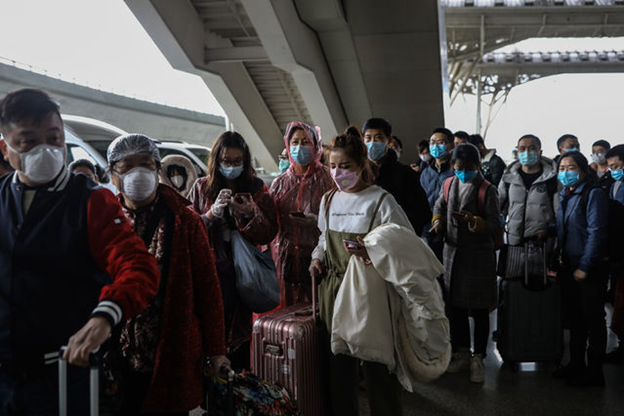 3月28日,武漢火車站,從廣州南到武漢的G1112次列車乘客排隊(duì)出站。記者 趙迪/攝