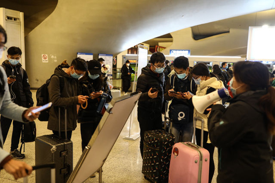 3月28日,武漢火車站,抵達(dá)的乘客在注冊(cè)健康碼。記者 趙迪/攝