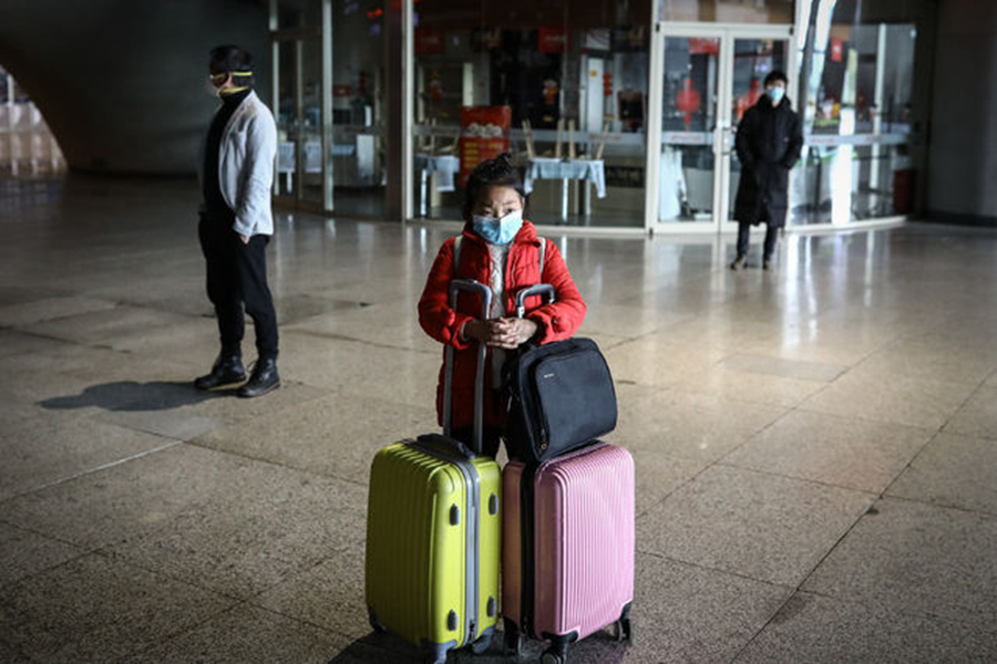3月28日,武漢火車站,一名小女孩在等待同行的長(zhǎng)輩。記者 趙迪/攝