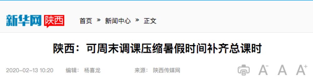 今年2月,四川就曾下發(fā)通知明確:中小學因延遲開學耽誤的教學時間,可通過調整周末和暑期等方式補齊。