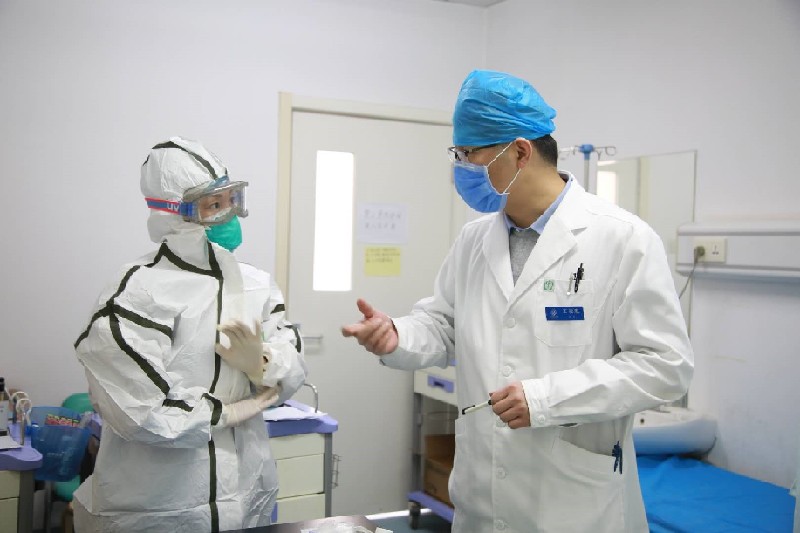 作為科主任,王凌航除了以身作則之外,還做了大量心理疏導(dǎo)工作。“還有護士防護問題,我告訴她們,采集鼻咽拭子標本時,側(cè)著點兒身子?!弊鳛閭魅静<?,在健康科普宣傳的“戰(zhàn)場”上,基層單位督導(dǎo)工作現(xiàn)場中,院內(nèi)會診、危重癥患者查房討論中,到處可見他忙碌的身影。