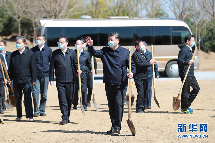 4月3日,黨和國(guó)家領(lǐng)導(dǎo)人習(xí)近平、李克強(qiáng)、栗戰(zhàn)書(shū)、汪洋、王滬寧、趙樂(lè)際、韓正、王岐山等來(lái)到北京市大興區(qū)舊宮鎮(zhèn)參加首都義務(wù)植樹(shù)活動(dòng)。 新華社記者 龐興雷 攝