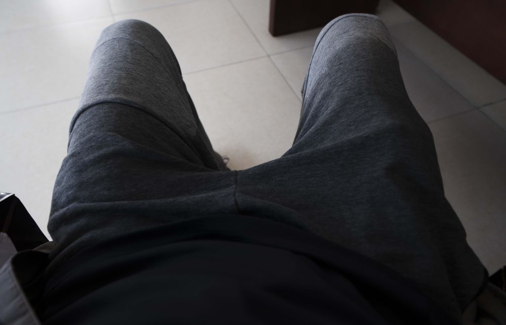 ↑3月26日,從醫(yī)療廢物處理車間拍攝結(jié)束出來后我的褲子,汗已經(jīng)濕到了膝蓋。