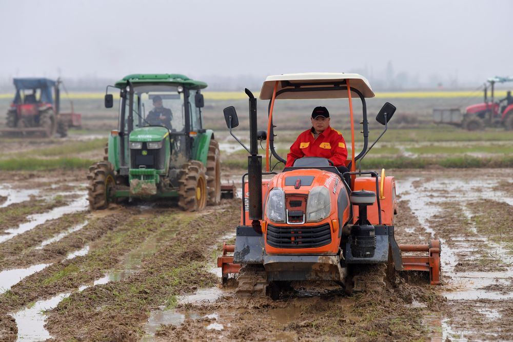 在江西省南昌縣蔣巷鎮(zhèn),當(dāng)?shù)剞r(nóng)民駕駛拖拉機在高標(biāo)準農(nóng)田里進行春耕翻地作業(yè)。新華社記者 彭昭之 攝