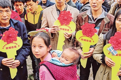 會澤縣易地扶貧搬遷的鄉(xiāng)親們領取會澤新城一期新居鑰匙。