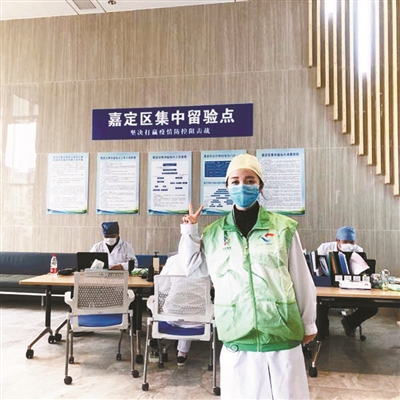 還在隔離時(shí),曹元元就希望隔離結(jié)束后能夠當(dāng)一名志愿者回饋社會(huì),她也詢問了嘉定區(qū)的工作人員。她告訴北青報(bào)記者,因?yàn)樵跈C(jī)場(chǎng)檢疫時(shí)收獲感動(dòng),一開始她最想去機(jī)場(chǎng)當(dāng)志愿者,后來得知工作強(qiáng)度太大,機(jī)場(chǎng)主要招募男性志愿者,于是她選擇到嘉定區(qū)一個(gè)隔離點(diǎn)當(dāng)志愿者。4月15日,曹元元正式上崗。