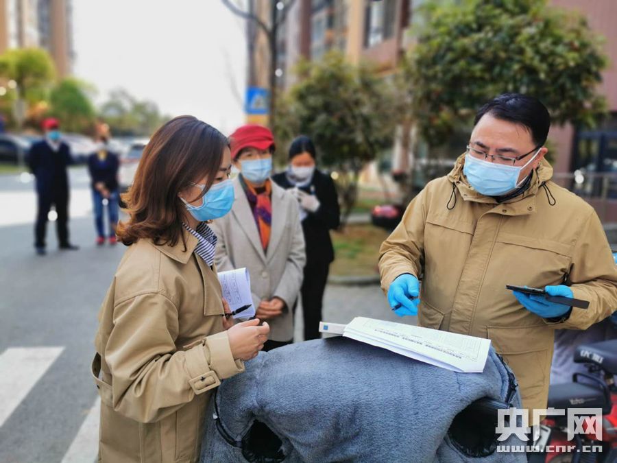 湖北省防疫指揮部到楓樺葦岸社區(qū)核查“四類人員”一對一包保情況(央廣網(wǎng)發(fā) 通訊員供圖)