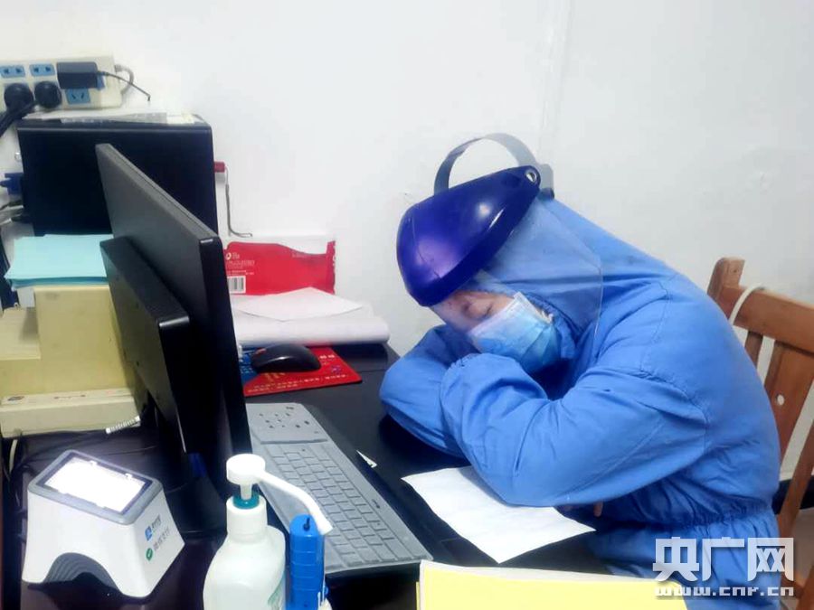 疲憊的吳婷趴在桌上睡著了(央廣網(wǎng)發(fā) 通訊員供圖)