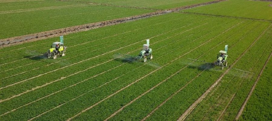 農業(yè)托管改變了當?shù)氐霓r業(yè)生產方式,山西省翼城縣新翔豐農業(yè)科技有限公司植保作業(yè)人員在田間進行除草作業(yè) 李虎威 攝