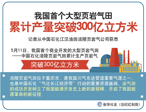 新華社重慶5月11日電(記者陶冶)記者從中國石化江漢油田涪陵頁巖氣公司獲悉,5月11日,我國首個商業(yè)開發(fā)的大型頁巖氣田——中國石化涪陵頁巖氣田累計(jì)生產(chǎn)頁巖氣突破300億立方米。