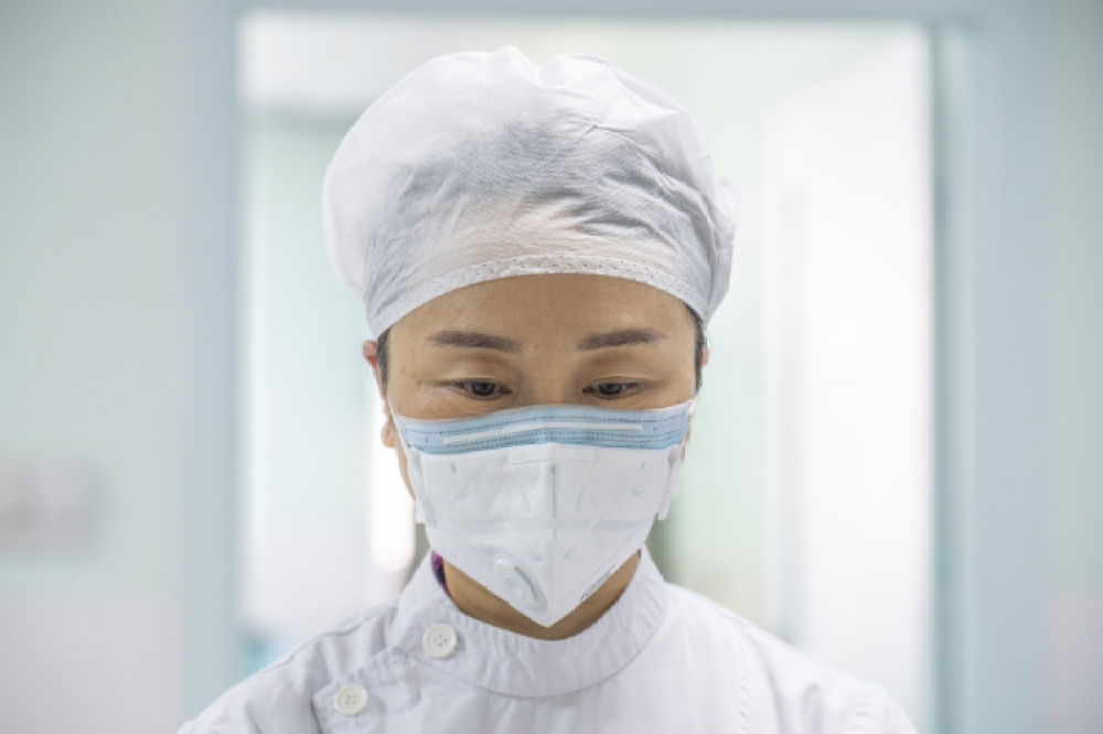 4月4日,在武漢大學(xué)中南醫(yī)院住院部,醫(yī)護(hù)人員在默哀 才楊/攝