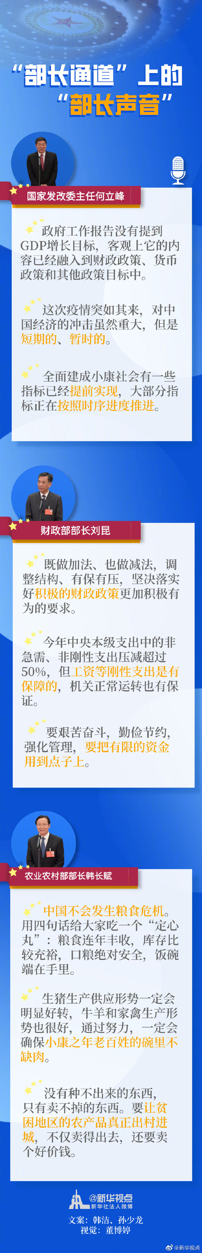 22日,國(guó)家發(fā)展改革委主任何立峰、財(cái)政部部長(zhǎng)劉昆、農(nóng)業(yè)農(nóng)村部部長(zhǎng)韓長(zhǎng)賦先后亮相“部長(zhǎng)通道”。部長(zhǎng)們?cè)诖饐?wèn)之中,傳遞出哪些重要信息?一起聆聽(tīng)“部長(zhǎng)聲音”!