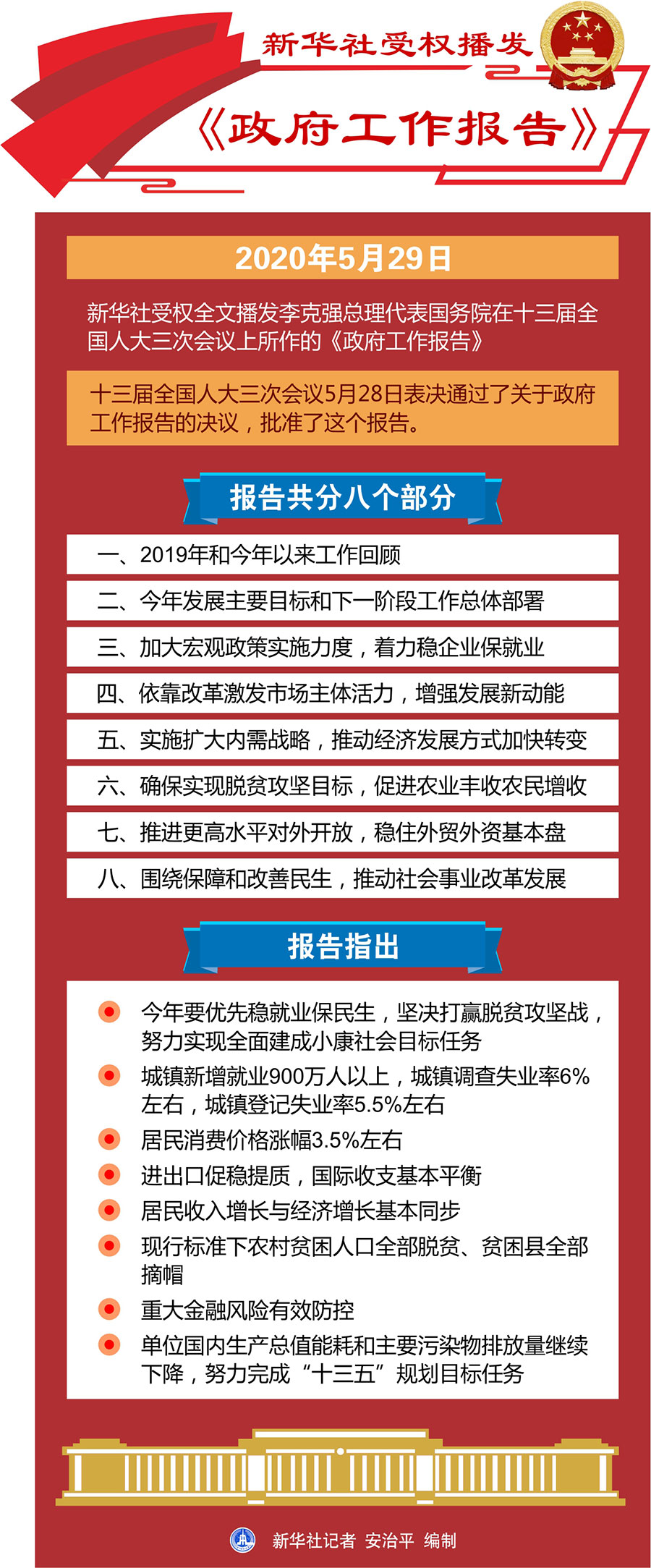 報告共分八個部分:一、2019年和今年以來工作回顧;二、今年發(fā)展主要目標和下一階段工作總體部署;三、加大宏觀政策實施力度,著力穩(wěn)企業(yè)保就業(yè);四、依靠改革激發(fā)市場主體活力,增強發(fā)展新動能;五、實施擴大內(nèi)需戰(zhàn)略,推動經(jīng)濟發(fā)展方式加快轉(zhuǎn)變;六、確保實現(xiàn)脫貧攻堅目標,促進農(nóng)業(yè)豐收農(nóng)民增收;七、推進更高水平對外開放,穩(wěn)住外貿(mào)外資基本盤;八、圍繞保障和改善民生,推動社會事業(yè)改革發(fā)展。