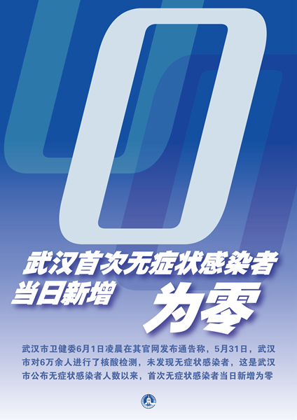 新華社武漢6月1日電 武漢市衛(wèi)健委6月1日凌晨在其官網(wǎng)發(fā)布通告稱,5月31日,武漢市對6萬余人進(jìn)行了核酸檢測,未發(fā)現(xiàn)無癥狀感染者,這是武漢市公布無癥狀感染者人數(shù)以來,首次無癥狀感染者當(dāng)日新增為零。