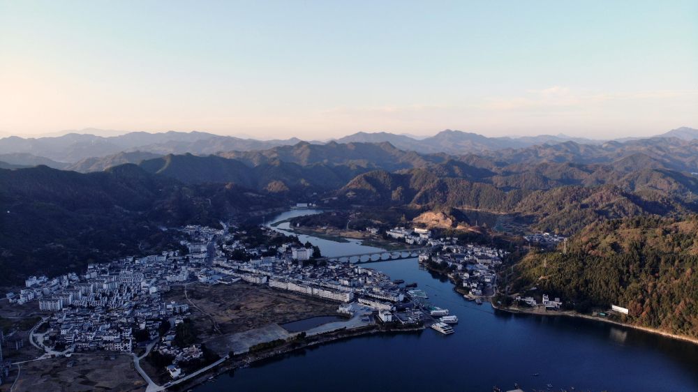 美麗的新安江山水畫廊(2019年11月15日攝,無(wú)人機(jī)照片)。新華社發(fā)(黃博涵攝)