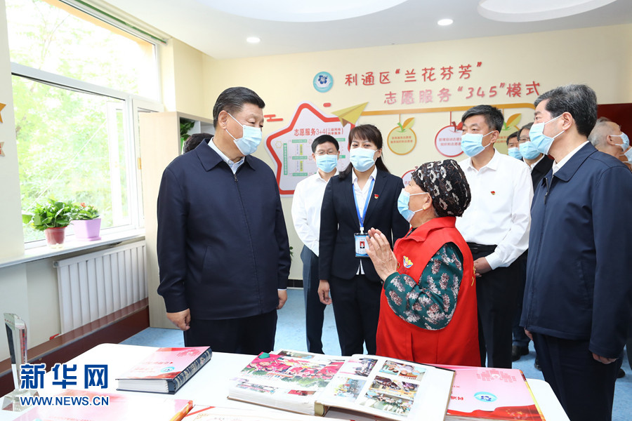 6月8日至10日,中共中央總書(shū)記、國(guó)家主席、中央軍委主席習(xí)近平在寧夏考察。這是6月8日下午,習(xí)近平在吳忠市利通區(qū)金花園社區(qū)考察民族團(tuán)結(jié)社區(qū)創(chuàng)建工作情況。 新華社記者 謝環(huán)馳 攝