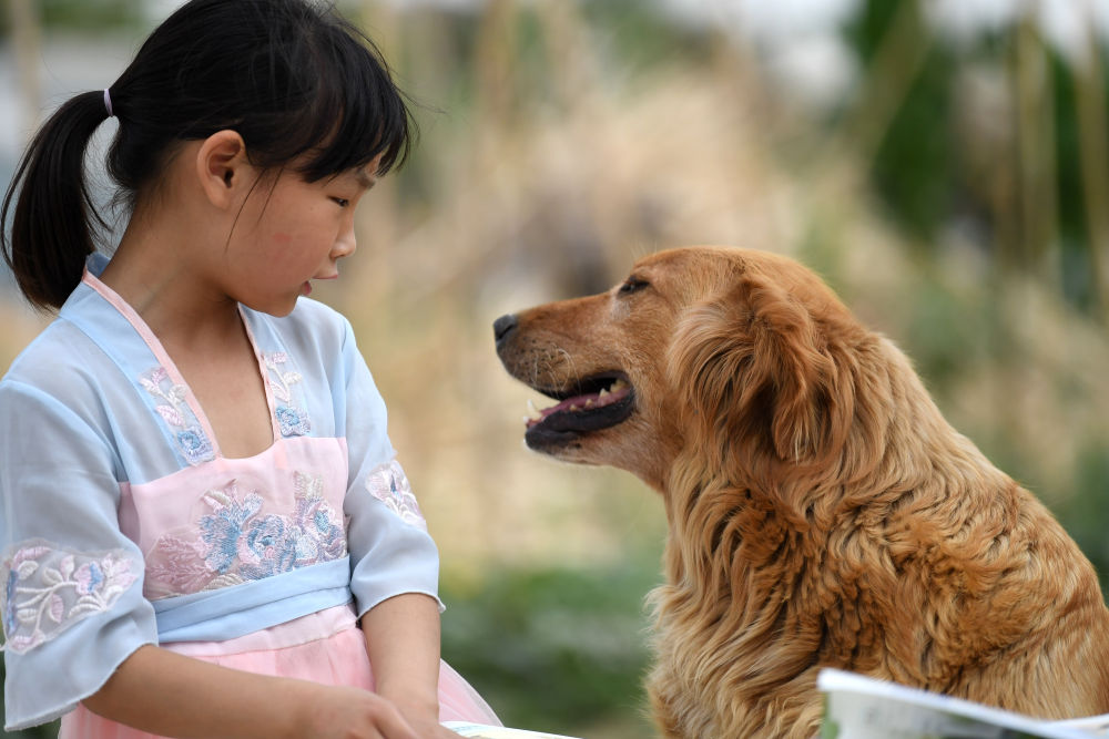 ↑?小思揚和同學(xué)家的狗玩耍。