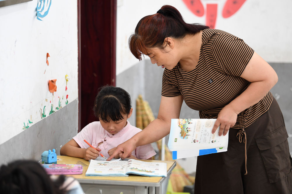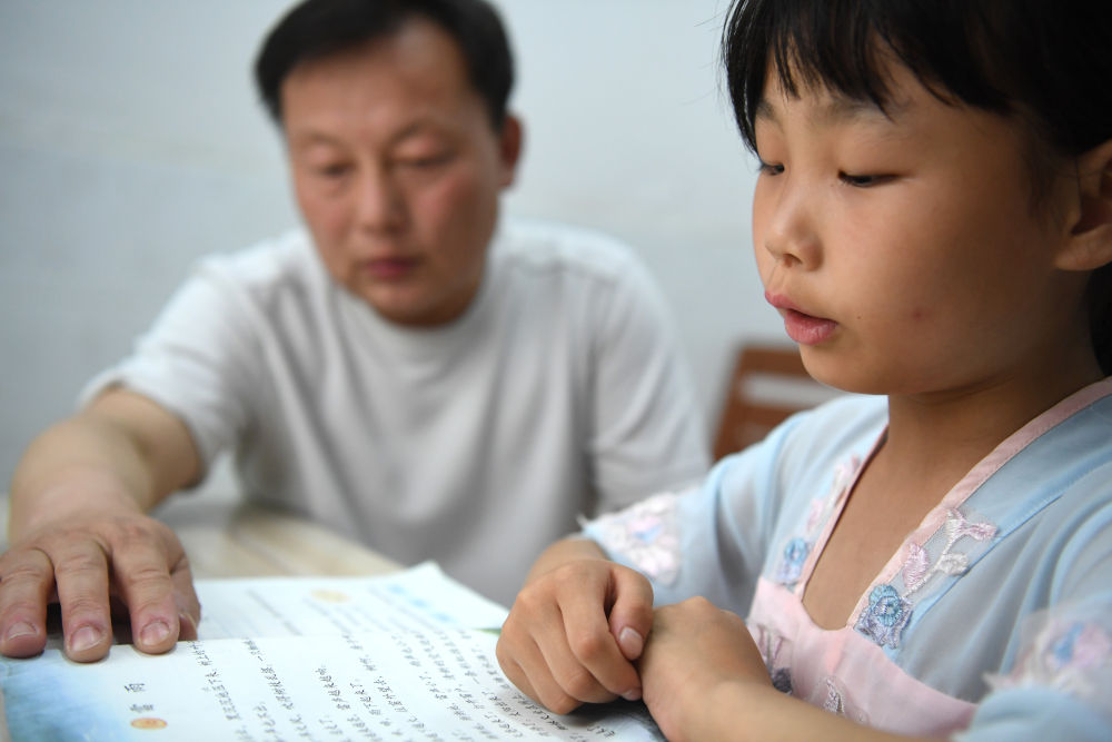 ↑?鄭加衛(wèi)在輔導(dǎo)小思揚學(xué)習(xí)。
