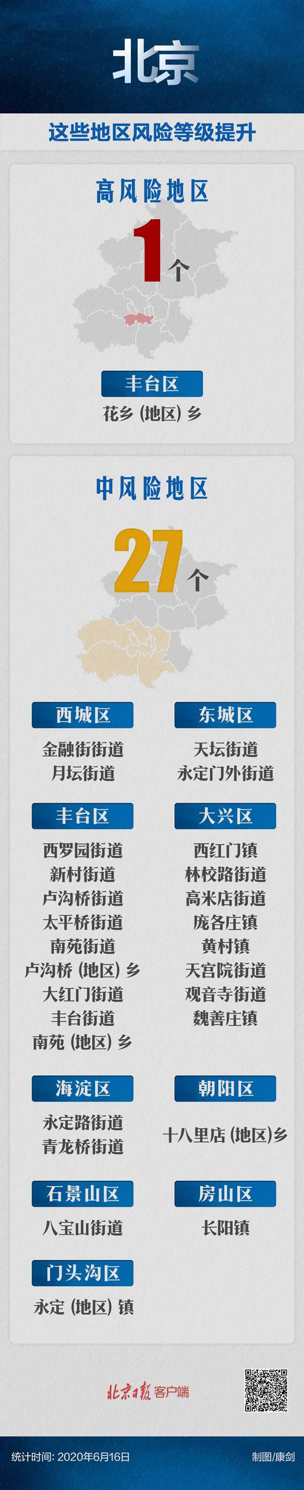 目前,北京已有1個高風險地區(qū),27個中風險地區(qū)。