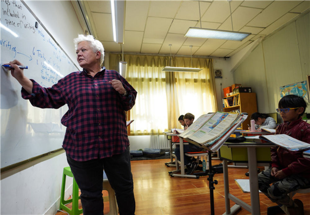 一名外籍老師在西寧市外籍人員子女學校內(nèi)為孩子們上課(2019年11月4日攝)。新華社記者 吳剛 攝