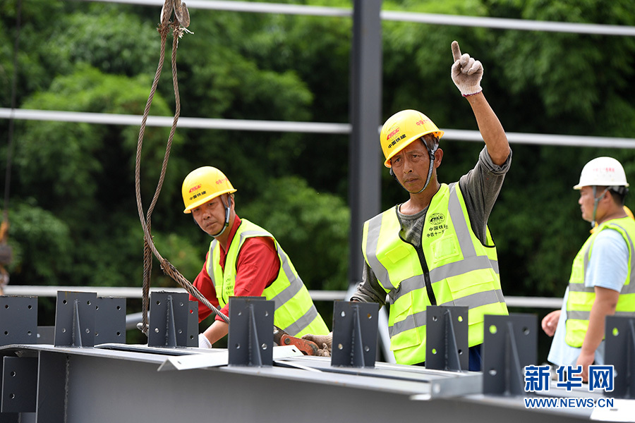 6月9日,工人在位于重慶市巴南區(qū)的渝湘高鐵重慶段建設工地現場作業(yè)。 新華社記者 唐奕 攝(資料圖)