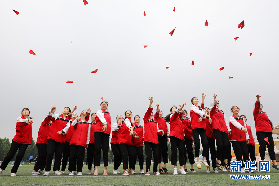 2020年7月3日,河南省溫縣一中高三學(xué)生在學(xué)校操場上做減壓游戲。 2020年全國高考即將拉開帷幕,同學(xué)們從容應(yīng)對,以良好的狀態(tài)迎接高考的到來。 新華社發(fā)(徐宏星 攝)
