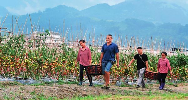 貴州榕江“壩區(qū)經(jīng)濟(jì)”助農(nóng)增收。這是6月2日,農(nóng)民在貴州省榕江縣車江壩區(qū)采收西紅柿 楊文斌攝 / 本刊