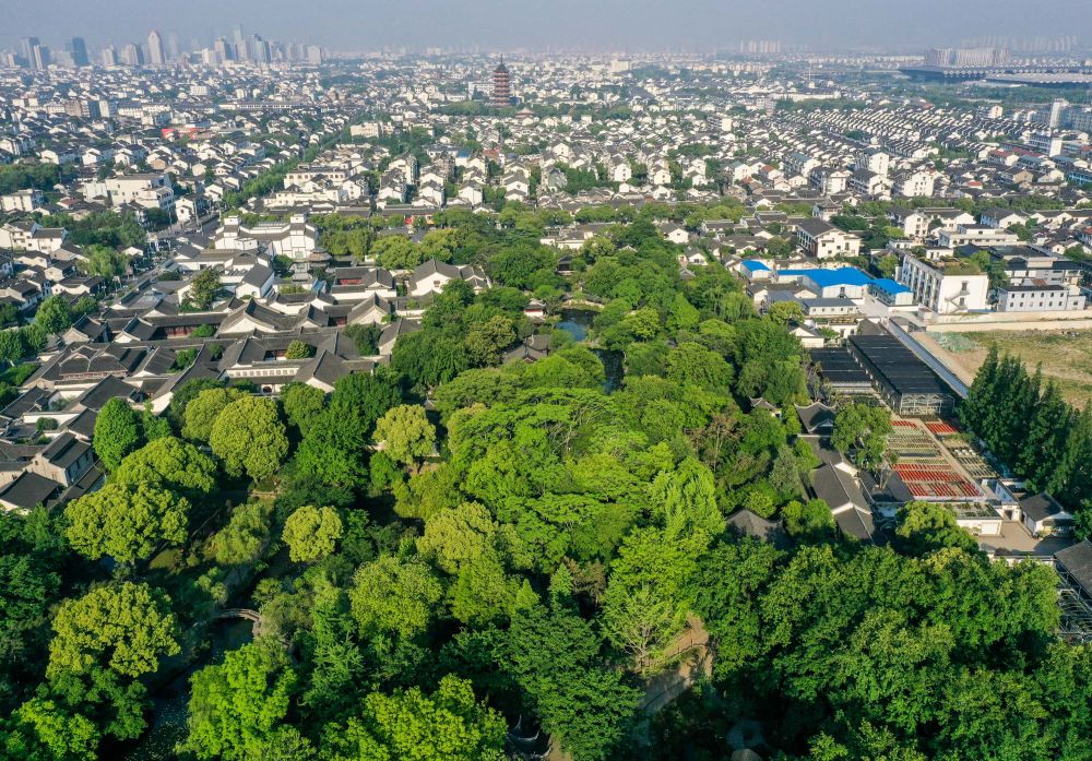 2019年5月9日拍攝的江蘇省蘇州城區(qū)風(fēng)貌(無(wú)人機(jī)照片)。新華社記者 李博 攝