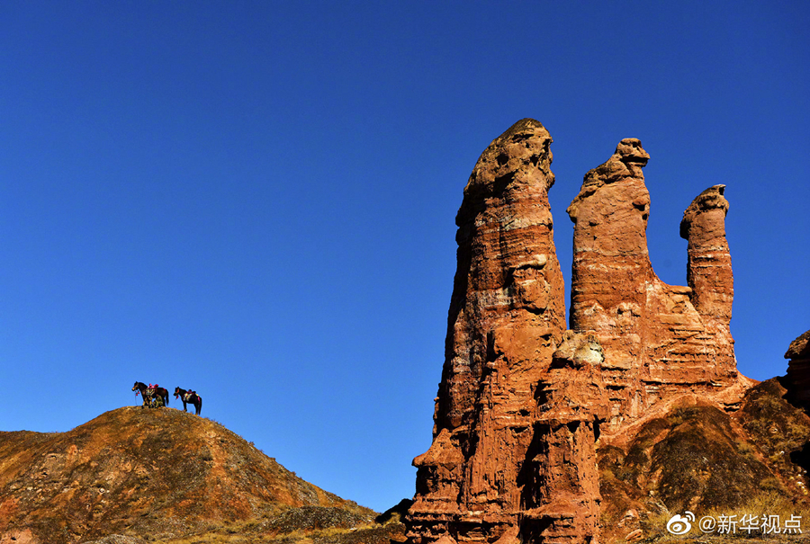 張掖世界地質公園位于甘肅省張掖市。該地質公園最顯著的特征是有由色彩斑斕的褶皺泥巖和砂巖組成的彩色丘陵,同時還擁有自然侵蝕在山體上形成的“窗欞狀”“宮殿式”丹霞地貌和古代洋殼殘余九個泉蛇綠巖套。