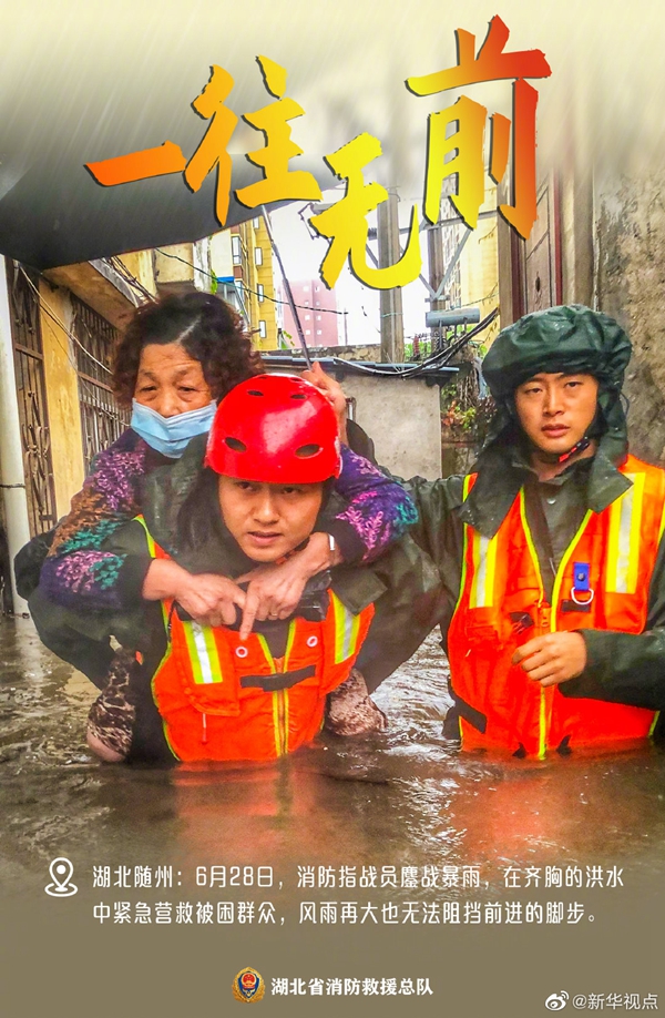 湖北近期遭遇持續(xù)強(qiáng)降雨天氣,部分地區(qū)出現(xiàn)洪澇災(zāi)害。洪水襲來,在救援現(xiàn)場奔波忙碌的消防救援人員,始終沖在一線,“橙”風(fēng)破浪,守護(hù)著人民群眾的生命和財(cái)產(chǎn)安全。這抹“橙”,成為災(zāi)區(qū)人民心中最溫暖的底色。向“逆行者”致敬!(記者梁建強(qiáng))