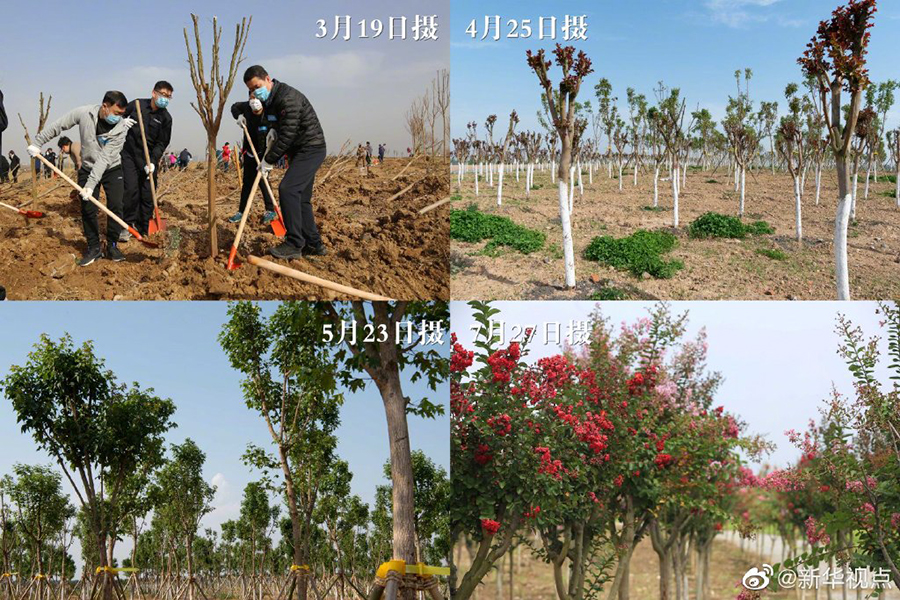 四個(gè)多月前的3月19日,遼寧、寧夏、福建援襄醫(yī)療隊(duì)代表來到魚梁洲參加援襄醫(yī)療隊(duì)紀(jì)念林植樹活動(dòng)。紀(jì)念林面積22.5畝,設(shè)計(jì)為愛心形狀,共2020棵。如今,這片“愛心林”已開花變紅,成為襄陽市一道風(fēng)景。(記者 謝劍飛,報(bào)道員 楊東)