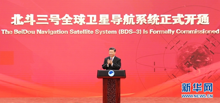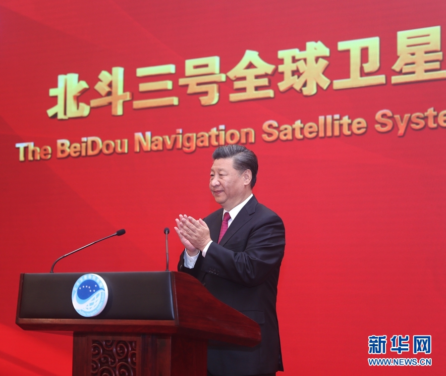 10時(shí)48分,習(xí)近平走上主席臺(tái),宣布:“北斗三號(hào)全球衛(wèi)星導(dǎo)航系統(tǒng)正式開(kāi)通!”全場(chǎng)響起經(jīng)久不息的熱烈掌聲。