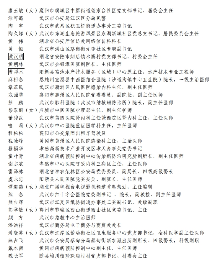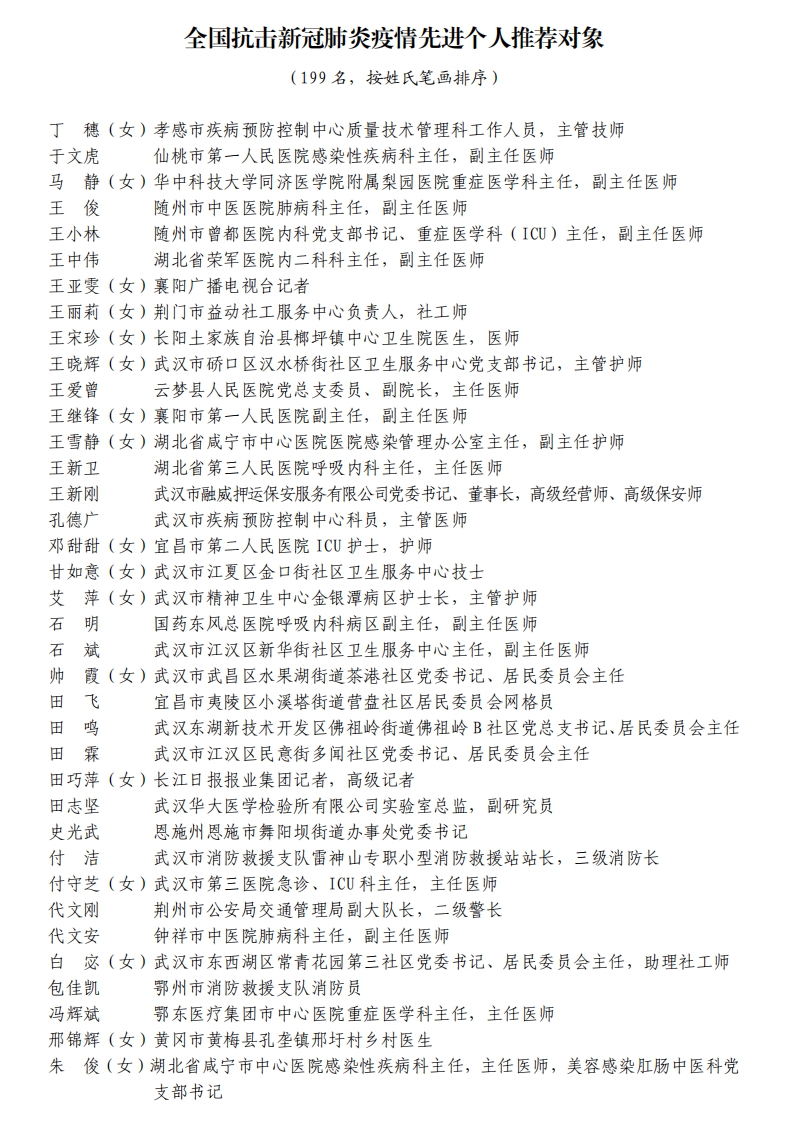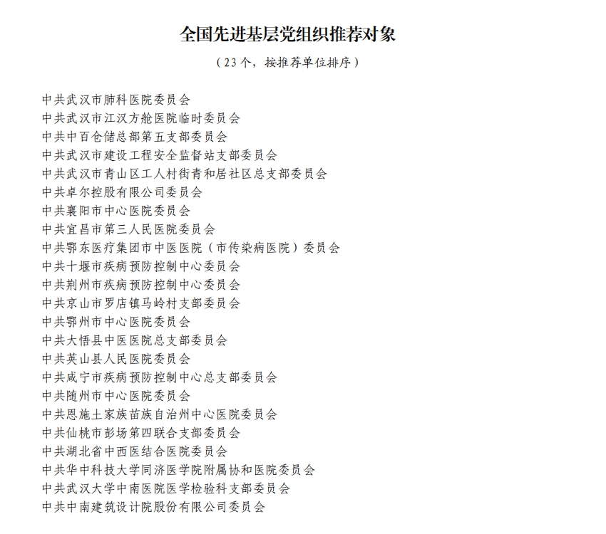 據(jù)湖北省人民政府網(wǎng)站消息,5日,湖北省人民政府發(fā)布關(guān)于全國抗擊新冠肺炎疫情先進(jìn)個人、先進(jìn)集體和全國優(yōu)秀共產(chǎn)黨員、全國先進(jìn)基層黨組織推薦對象的公示。武漢市武昌醫(yī)院原黨委副書記、院長,主任醫(yī)師劉智明等入選。