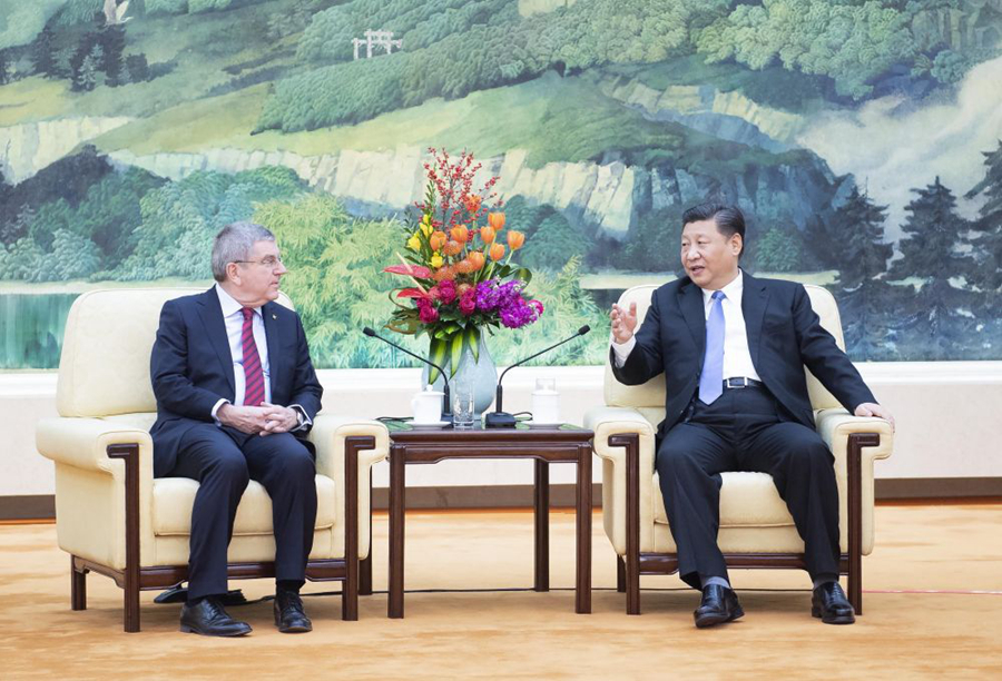 2019年1月,北京,習近平會見國際奧委會主席巴赫。(新華社記者李濤 攝)