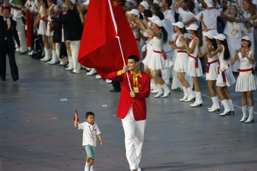 手舉國(guó)旗入場(chǎng)的姚明