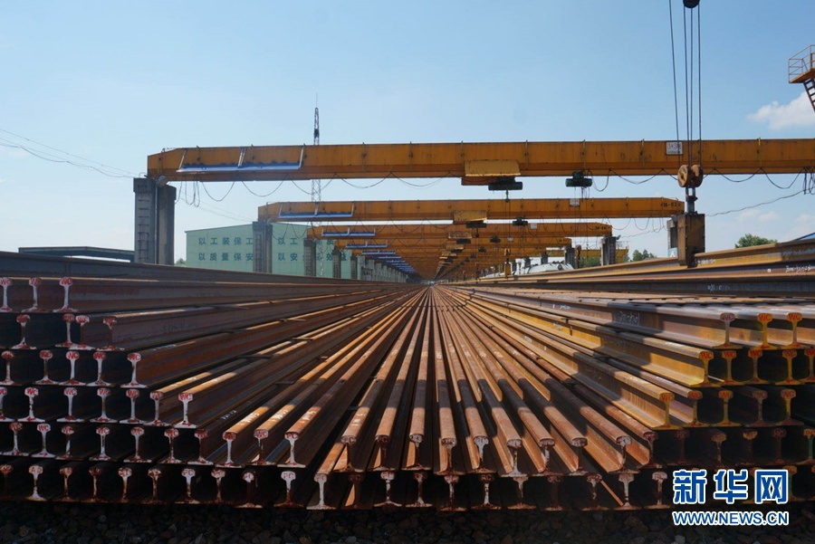 8月17日,在向塘長(zhǎng)軌基地,焊接好的一根根百米長(zhǎng)高鐵鋼軌整齊地排列在一起。新華網(wǎng)記者劉瓊?攝